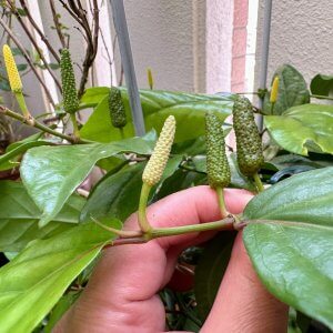3鉢あるピパーチのうち、1鉢だけうまく育ち、実が収穫できるようになりました♪