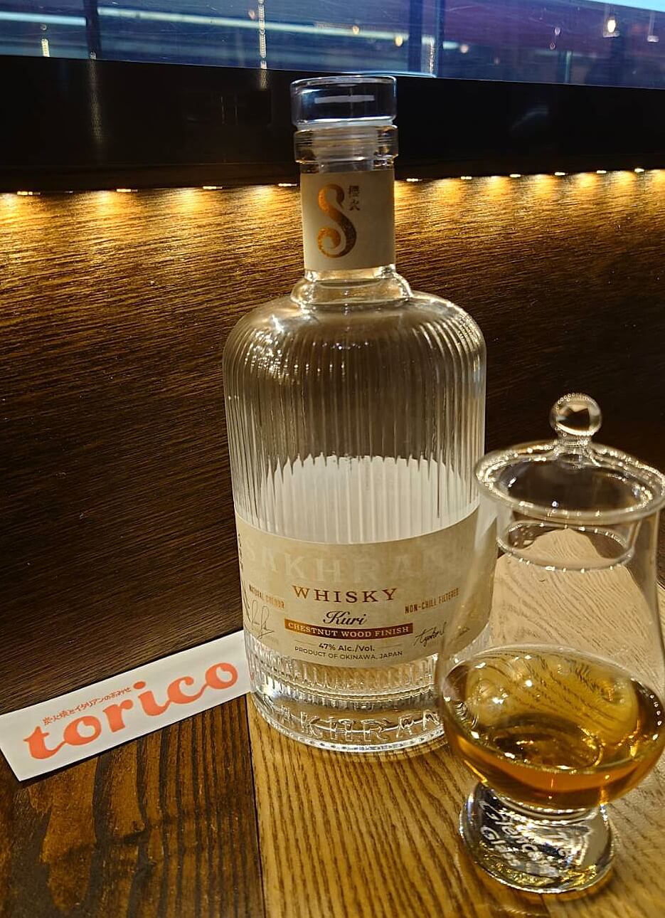 自宅から歩いて15分ほどの那覇市田原の「炭火焼きとイタリアンのお店 torico(トリコ)」さんでご紹介いただいた沖縄の新しいウイスキー「サクラニ」。